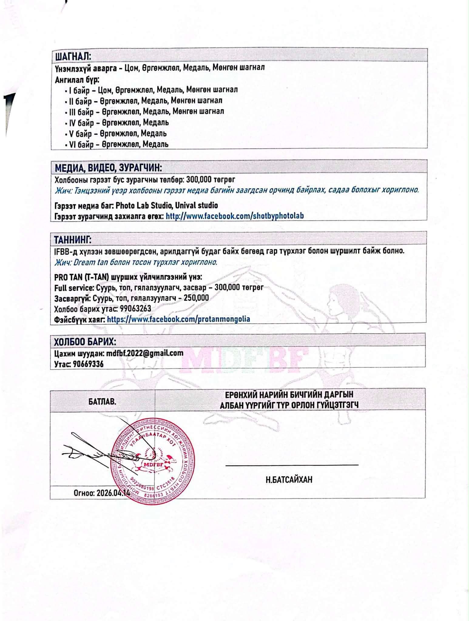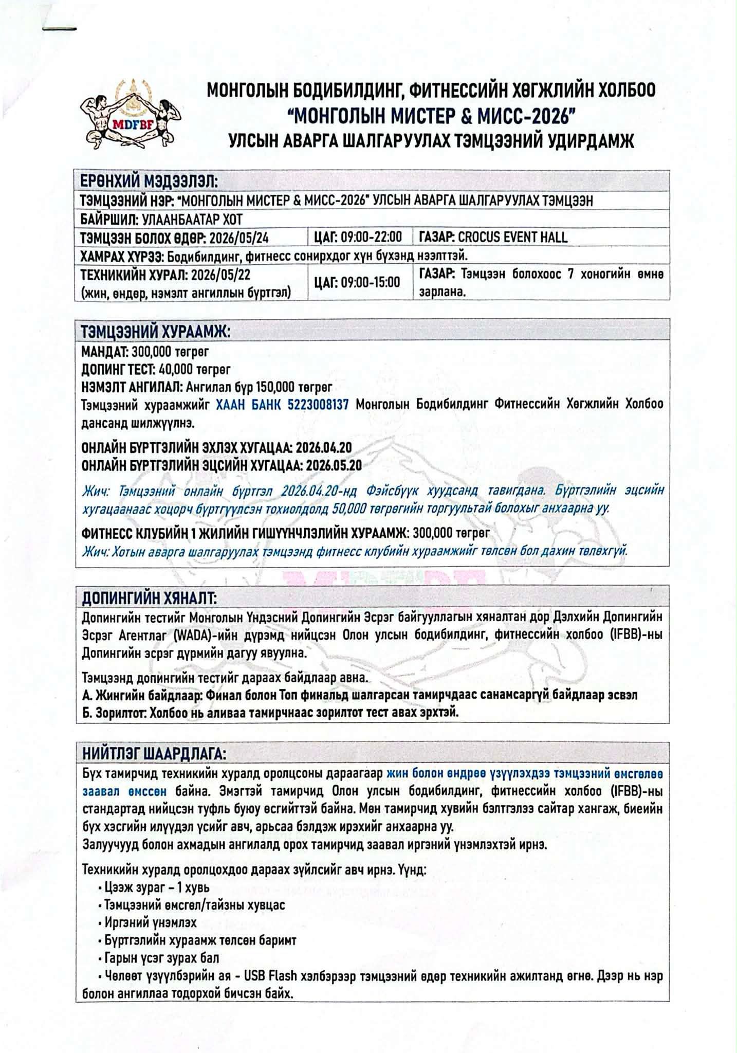 Монголын Бодибилдинг Фитнессийн Хөгжлийн Холбоо -ноос зохион байгуулагддаг